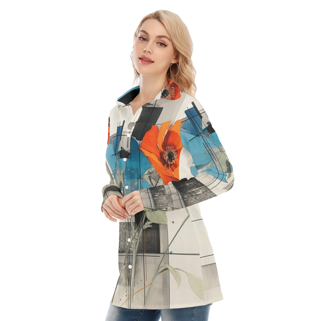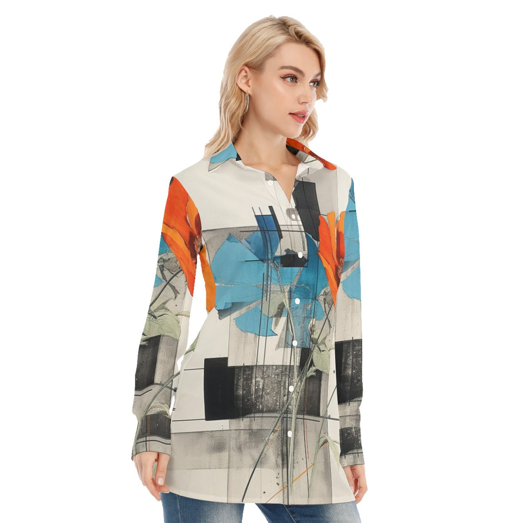 3R9GG All-Over Print Women's Long Shirt |115GSM 98% Cotton and 2% spandex
