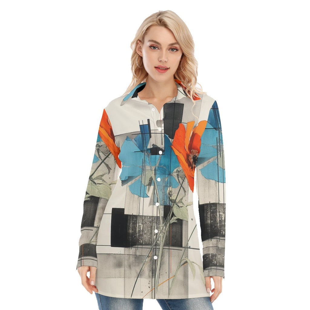 Look unique with this  All-Over Print Women's Long Shirt, made from a luxuriously soft blend of 115GSM 98% cotton and 2% spandex. This one-of-a-kind design is not something you'll find in stores, so grab it now to keep your wardrobe looking fresh! (And don't worry, with a spandex blend, you can still enjoy that extra slice of pie without feeling guilty 🥧)