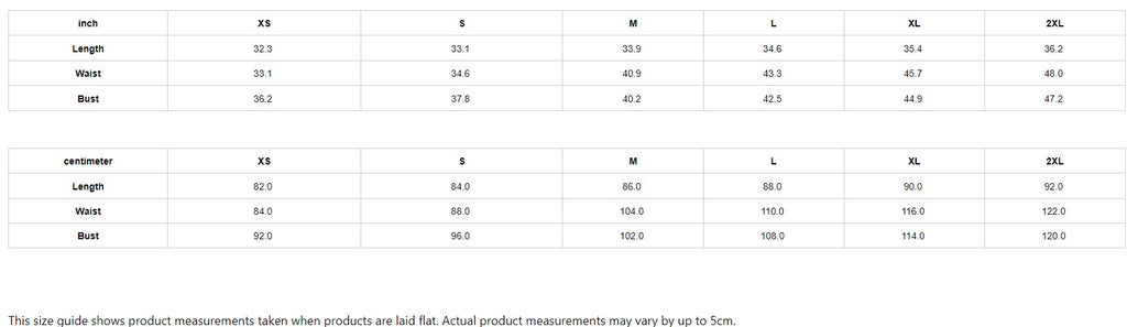 This size guide shows product measurements taken when products are laid flat. Actual product measurements may vary by up to 5cm.